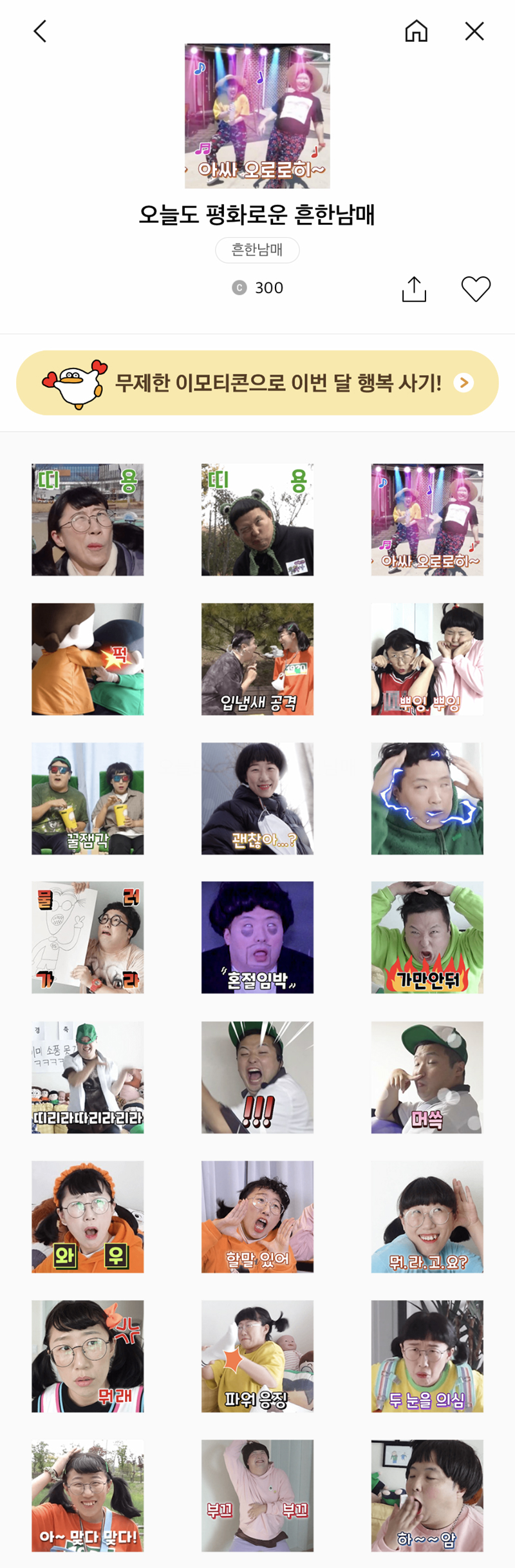 ÈçÇѳ²¸Å ÀÌÄÚÆ¼ÄÜÀº ij¸¯ÅÍ ¹öÀüÀÎ ¡®ÈçÇѳ²¸ÅÀÇ ÈçÇÑ ÀÏ»ó¡¯ 1ź°ú 2ź ±×¸®°í À̹ø¿¡ Ãâ½ÃÇÑ ¡®¿À´Ãµµ Æòȷοî ÈçÇѳ²¸Å¡¯±îÁö ÃÑ 3°³À̸ç, īī¿ÀÅå À̸ðƼÄÜ ¼¥¿¡¼ ±¸¸Å °¡´ÉÇÕ´Ï´Ù.